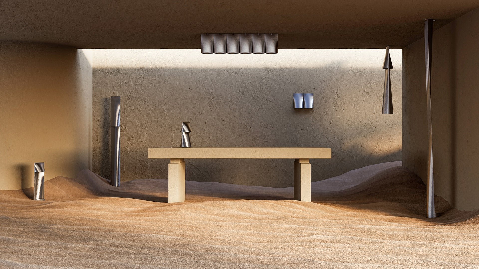 Born from the discipline of craft, the collection takes a single sheet of metal, untouched, elemental, and transforms it with one deliberate act. No excess. No ornament. Just form, light, and the quiet authority of intent.